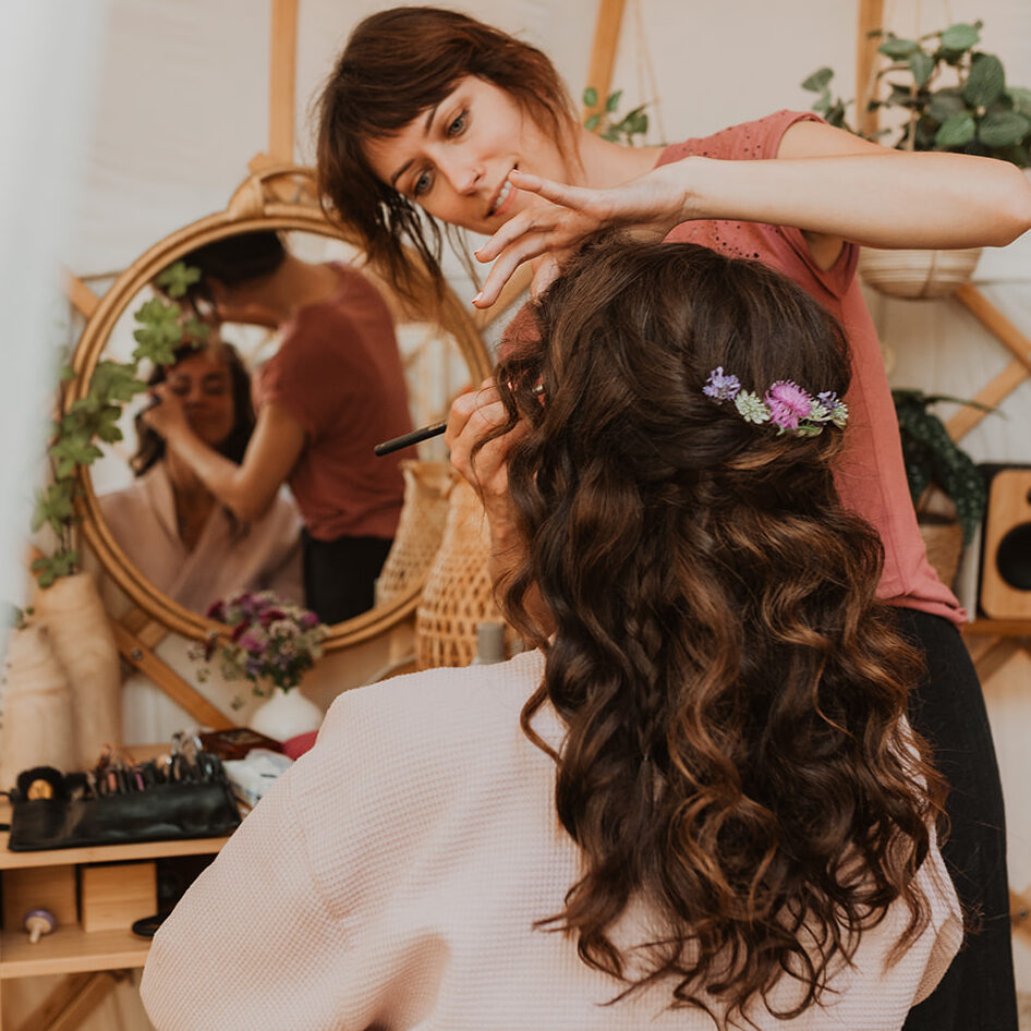 Ben je tevreden met het resultaat van de proefsessie en hebben wij een fijne klik? Dan plannen we samen een tijdstip op jouw trouwdag waar ik je kan voorzien van jouw gekozen bruidskapsel en bruidsmake-up. Dit kan bij mij in de salon, bij jou thuis of op locatie. Zodat jij je in alle rust kunt voorbereiden.